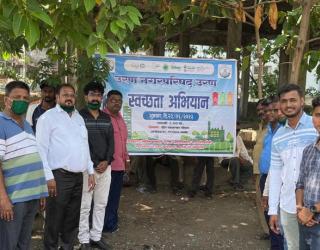 रायगड : उनप कर्मचारी, अधिकाऱ्यांनी शहरात राबविली स्वच्छता मोहीम; तासाभराच्या अभियानात ८० अधिकारी, कर्मचारी सहभागी
