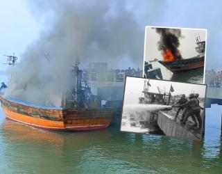 रायगड : करंजा बंदरात नांगरुन ठेवण्यात आलेल्या मच्छीमार बोटीला भीषण आग