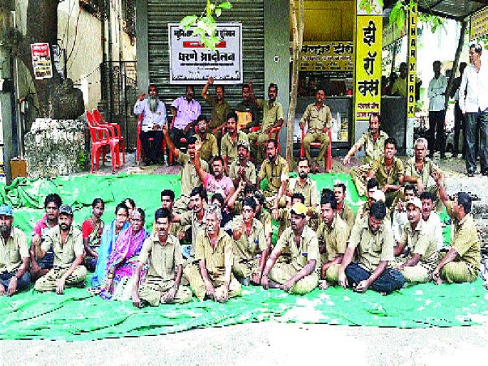 कर्जत - कर्जत नगरपरिषदेने साफसफाई व घंटागाडीचा ठेका चार कंपन्यांना दिला आहे. या सफाई कर्मचाऱ्यांनी विविध मागण्यांसाठी मंगळवारी नगरपरिषदेच्या कार्यालयासमोर एक दिवसाचे धरणे आंदोलन केले. या आंदोलनात ४२ कर्मचारी होते. मुख्याधिकाºयांशी चर्चा केल्यानंतर धरणे आंदोलन मागे घेण्यात आले.नगरपरिषदेमध्ये व घंटागाडीवर अनेक वर्षांपासून सफाई कामगार काम करीत आहेत. कायमस्वरूपी कामगारांना देण्यात येणाºया सेवा-सुविधा द्याव्या लागू नये म्हणून नगरपरिषदेकडून या कामगारांना कंत्राटी पध्दतीने राबवले जात आहे.कामगारांचे शोषण होऊ नये म्हणून शासनाने वेळोवेळी किमान वेतन देणे बंधनकारक असल्याचे आदेश पारित केले आहेत असे असताना कर्जत नगरपरिषदेकडून कामगारांना अत्यल्प वेतन दिले जाते आहे. याशिवाय कर्मचाºयांना कायद्यानुसार देय असणारे ई. एस. आय. आणि कर्मचारी भविष्य निधी कर्मचाºयांच्या खात्यामध्ये जमा केला जात नाही, कर्मचाºयांचे मासिक वेतन धनादेशाद्वारे केले जात नाही, ठेकेदारांकडून गणवेश, रेनकोट तसेच सुरक्षेची साधने मास्क, हॅण्डग्लोज पुरवली जात नाही. तसेच साफसफाईकरिता आवश्यक असणारी साधनेही दिली जात नाहीत.तसेच २०१७ चा दिवाळी बोनस सुद्धा ठेकेदारांनी कामगारांना दिलेला नाही, नगरपरिषदेच्या अखत्यारीतील ठेकेदार अशा पध्दतीने कर्मचाºयांची पिळवणूक करत आहे. सफाई कर्मचाºयांनी म्युनिसिपल एम्प्लॉईज युनियनच्यावतीने एक दिवसाचे धरणे आंदोलन केले.याप्रसंगी म्युनिसिपल एम्प्लॉईज युनियनचे सरचिटणीस अनिल जाधव, कार्याध्यक्ष संतोष पवार, कामगार अनंत गायकवाड, स्वप्निल सोनावणे, राहुल गायकवाड, मदन हिरे, अनिल शिंदे, उमेश गायकवाड उपस्थित होते. त्यांनी मुख्याधिकारी रामदास कोकरे यांची भेट घेऊन चर्चा केली. काही मागण्या मुख्याधिकारी कोकरे यांनी तत्काळ सोडविण्यात येतील, असे सांगितले.कामगारांचे शोषण होऊ नये म्हणून किमान वेतन देणे बंधनकारक असल्याचे आदेश पारित आहेत.- अनिल जाधव, सरचिटणीस, म्युनिसिपल एम्प्लॉईज युनियनएम्प्लॉईज प्रॉव्हिडंट फंडबाबत काही बाबी अपूर्ण असतील तर त्या तत्काळ पूर्तता करून त्यांना न्याय देण्यात येईल.- रामदास कोकरे, मुख्याधिकारी, कर्जत नगरपरिषद