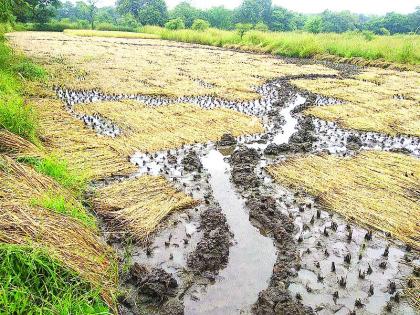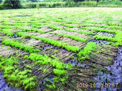 नवी मुंबई - ऑक्टोबर अखेरीस आलेल्या अवकाळी पावसाचा तडाखा राज्यातील सर्वच भागांतील पिकांना बसला आहे. रायगडमधील जवळपास सर्वच तालुक्यातील भात शेतात पाणी साचल्याने कापणीला आलेले पीक अक्षरश: कुजले आहे. आधीच पुरात भाताची रोपे वाहून गेल्याने शेतकऱ्यांना दुबार पेरणी करावी लागली होती. त्यात हातातोंडाशी आलेले पीक अवकाळी पावसाने हिरावून घेतल्याने शेतकरी हवालदिल झाला आहे. आता जगायचे कसे, असा प्रश्न त्यांच्यासमोर आहे. सरकारच्या आदेशानंतर पंचनाम्यांना सुरुवात झाली आहे.