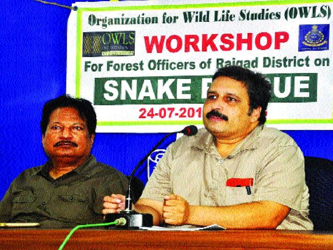 अलिबाग : सापांचे मृत्यू, प्रसंगी नामशेष होत असलेल्या सापांच्या विविध जाती, गैरसमजामुळे मारले जाणारे साप विविध कारणास्तव जखमी होणारे साप या सर्व पार्श्वभूमीवर ‘स्नेक रेस्क्यू’ अर्थात सर्प संरक्षण ही अत्यंत आवश्यक बाब ठरत आहे. यावर उपाय योजण्यासाठी ‘स्नेक रेस्क्यू’ अर्थात सर्प संरक्षणाकरिता सापांना पकडण्याचे आणि सुरक्षित ठिकाणी पुन्हा निसर्गात सोडून देण्याचे काम करण्यासाठी वन अधिकारी व त्यांच्या क्षेत्रातील सर्पमित्र यांचा समन्वय साधून राज्यातील पहिल्या चर्चासत्रांचे आयोजन आॅर्गनायझेशन फॉर वाइल्ड लाइफ स्टडीज (ओडब्ल्यूएलएस)च्या माध्यमातून रायगड जिल्हा पोलीस मुख्यालयाच्या सभागृहात करण्यात आले होते. या चर्चासत्रांतील विचारमंथनांती सर्प संरक्षणविषयक एक महत्त्वाचे पुढचे पाऊल टाकले गेले असल्याची माहिती आॅर्गनायझेशन फॉर वाइल्ड लाइफ स्टडीज संस्थेचे अध्यक्ष गणेश मेहंदळे यांनी ‘लोकमत’शी बोलताना दिली आहे.