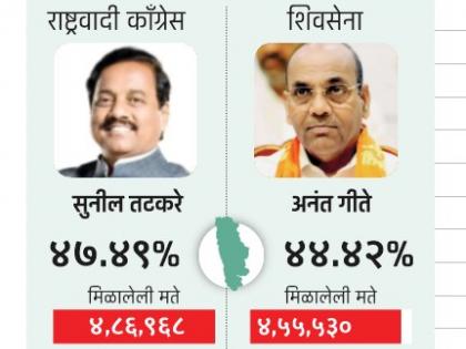 २०१४ मध्ये अनंत गीते २,११० मतांनी तर २०१९ मध्ये सुनील तटकरे ३१ हजार मतांनी विजयी झाले.