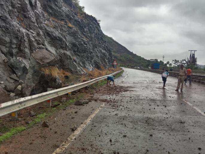 जमीर काझी, लोकमत न्यूज नेटवर्क, अलिबाग: मान्सूनच्या जोरदार पावसामुळे मुंबई- गोवा महामार्गांवर महाड तालुक्यातील केभुर्ली जवळ रविवारी पहाटे दरड कोसळली. सुदैवाने या दुर्घटनेत कोणालाही इजा झालेली नाही . मात्र त्यामुळे मार्गावरील वाहतूक काही तास विस्कळीत झाली. वाहनांच्या लांबवर रांगा थांबून राहिल्या. महामार्ग वाहतूक व स्थानिक पोलिसांनी दरड बाजूला करून मार्ग मोकळा केल्यानंतर वाहतूक पूर्ववत सुरू झाली.