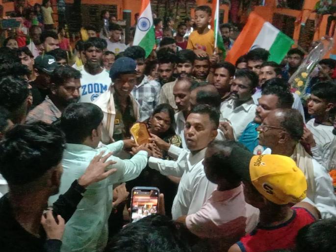 - मधुकर ठाकूर उरण : देशसेवेसाठी स्थापन केल्या अग्निवीर इंडियन आर्मीमध्ये दाखल होऊन सहा महिन्यांचे प्रशिक्षण पूर्ण केल्यानंतर गावी आलेल्या उरण तालुक्यातील रावे गावचा प्रज्वल टावरी या युवकाचे गावकऱ्यांनी रविवारी (१८) ढोलताशांच्या गजरात जोरदार स्वागत केले.