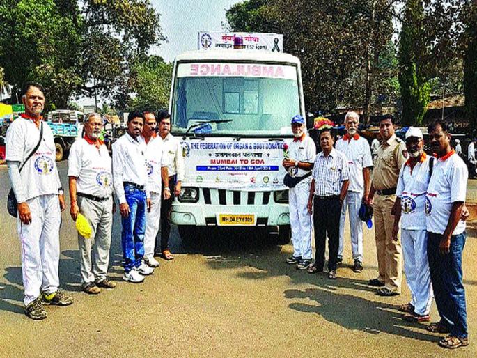 महाड : अवयवदानाबाबत समाजात मोठे गैरसमज आहेत. यामुळे अवयवदानाच्या चळवळीत अडचणी येत असतात. ही चळवळ अधिक व्यापक करण्यासाठी व या विषयी समाजात जनजागृती करण्यासाठी नाशिकचे ६८ वर्षीय सुनील देशपांडे यांच्या नेतृत्वाखाली निघालेल्या मुंबई ते गोवा पायी वारीचे महाड येथे स्वागत करण्यात आले.