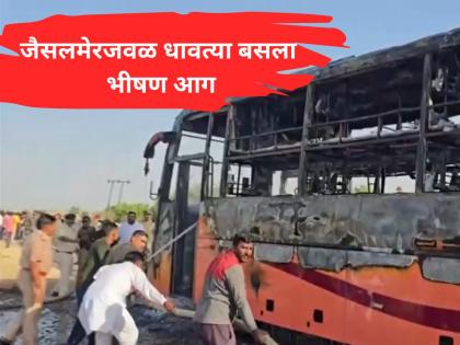 Rajasthan Jaisalmer Bus Catches Fire: राजस्थानातील जैसलमेर जिल्ह्यात मंगळवारी दुपारी धावत्या बसला अचानक आग लागल्याने एकच खळबळ माजली. ...
