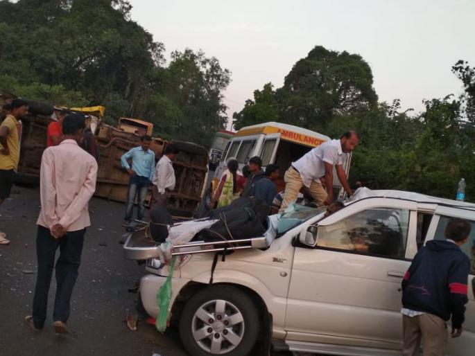 बोलेरो पिकअप मधील जखमी असे- चालक जितेंद्र जयराम सकपाळ (३३, तेलीवाडी लांजा), नबिसाब हुसनी चिक्काळी (४०) व मैनुद्दिन चिक्काळी (२८, दोघे मुजावरवाडी ता. लांजा).
