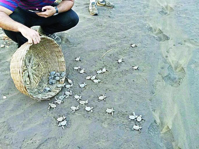 ही अंडी पुढील ५० दिवस समुद्रकिनारी नेटने बांधलेल्या जाळ्यांमध्ये खड्डा काढून ठेवल्यानंतर जन्माला येणाऱ्या पिल्लांना समुद्रात सोडून देण्यात येते. विभागीय वन अधिकारी विकास जगताप, प्राणीमित्र प्रदीप डिंगणकर, राकेश पाटील, सुधीर रिसबूड यांच्या मार्गदर्शनाखाली पिल्लांना समुद्रकिनाऱ्यांवर सोडण्यात आले.५० ते ५५ दिवसांनी अंड्यातून पिल्ले बाहेर येतातकासव समुद्रकिनाऱ्यावर अंडी घालून ती वाळूने झाकून निघून जाते. त्यानंतर खुणांवरून अंड्यांचा शोध घेतला जातो. ही अंडी समुद्रकिनारी तयार केलेल्या उबवणीगृहात ठेवली जातात. साधारण ५० ते ५५ दिवसांनी अंड्यातून पिल्ले बाहेर येतात. त्यांना समुद्रकिनारी २० ते २५ फुटांवर सोडण्यात येते.