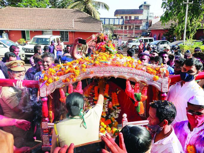 पुढे श्री नवलाई पावणाई मंदिरातून शहर पोलीस स्थानक, तेथून धनजीनाका, राधाकृष्ण नाका, रामनाका, मारुती आळी, गोखलेनाका, ढमालनीचा पार, विठ्ठल मंदिर, काँग्रेस भुवन, मुरलीधर मंदिर खालची आळीमार्गे मध्यरात्री १२ वाजता पालखी भैरी मंदिरात स्थानापन्न झाली. त्यानंतर मंदिरात धूपारती व गावाचे गाऱ्हाणे घालण्यात आले. शिवाय कोरोनाचा समूळ नाश करून समस्त जनतेच्या रक्षणाचे साकडे भैरीबुवांना घालण्यात आले.बारा वाड्यांचे ग्रामदैवत असणाऱ्या भैरी बुवाचा शिमगोत्सव शासकीय निर्बंधात साजरा करण्यात आला. गर्दी टाळून शांततेत व साधेपणाने गेले चा-पाच दिवस सुरू असलेल्या शिमगा उत्सवाची शुक्रवारी रात्री सांगता झाली. काही गावात पालख्या पाडव्यापर्यंत असल्याने शांततेत शिमगोत्सव साजरा केला जात आहे. गर्दी टाळण्यासाठी पालखी भेट सोहळा, यात्रा व अन्य कार्यक्रम रद्द करण्यात आले असून मोजक्याच मानकऱ्यांच्या उपस्थितीत धार्मिक कार्यक्रम करण्यात येत आहेत.