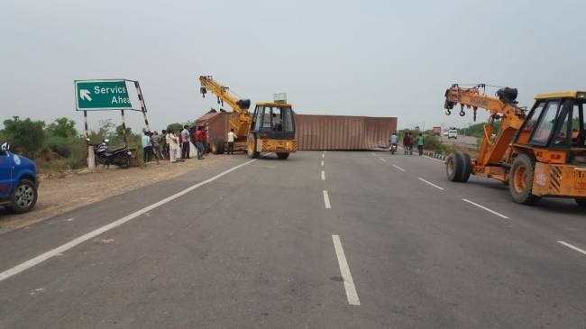 त्यानंतर नागरिकांनी घटनास्थळी धाव घेतली. वाहतूक पोलिसांना कळविले. पोलीस विश्वजीत परब व आंबिटकर घटनास्थळी आले. त्यांनी एका बाजूने नरडवे रस्त्यावरील वाहतूक वळविली. रात्री उशिरापर्यंत क्रेनच्या सहाय्याने कंटेनर नरडवे रस्त्यावरून बाजूला करण्याचा प्रयत्न सुरू होता.