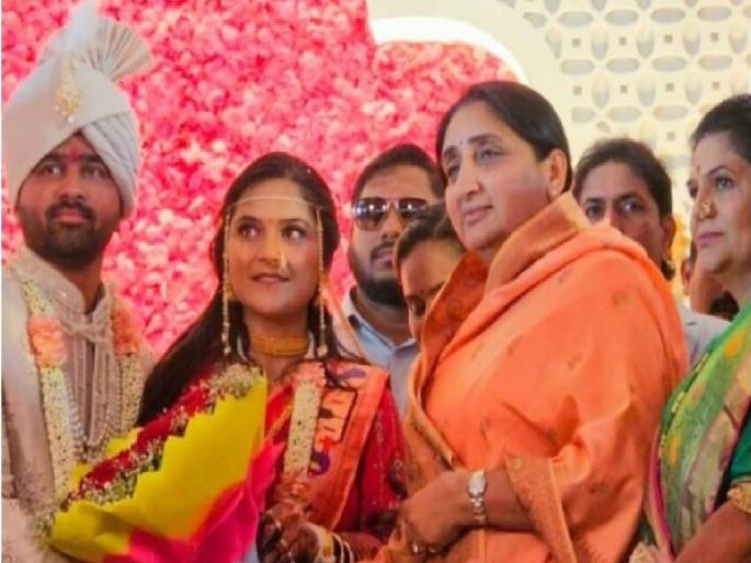 अक्षता पडल्यावर काही वेळात उपमुख्यमंत्री सुनेत्रा पवार विवाहस्थळी दाखल झाल्या. त्या स्टेजवर येताच आमदार निकम यांच्या पत्नी पूजा निकम यांनी त्यांना मिठी मारली; त्याक्षणी दोन्ही कुटुंबांतील स्नेहबंधांचा भावनिक आविष्कार सर्वांच्या डोळ्यांत पाणी आणणारा ठरला. उपमुख्यमंत्री पवार यांनी नवदाम्पत्याला शुभेच्छा देत आशीर्वाद दिले. मात्र, त्यांनी इतरांकडून औपचारिक शुभेच्छा स्वीकारणे टाळले.