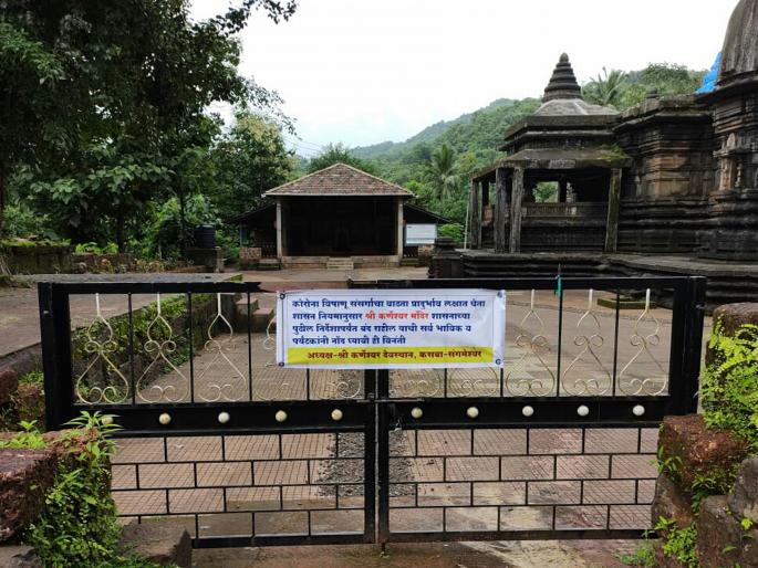 रत्नागिरी : श्रावण महिना म्हटला की, व्रतवैकल्यांचा पवित्र महिना. श्रावणातील प्रत्येक सोमवारी शंभू महादेवाच्या मंदिरात भाविकांची गर्दी पाहायला मिळते. मात्र, यावर्षी कोरोनाच्या पार्श्वभूमीवर लॉकडाऊन करण्यात आले आणि सर्व मंदिर बंद ठेवण्यात आली. त्यामुळे श्रावणातील पहिल्या सोमवारी भाविकांना शंभू महादेवाचे दर्शन दुरुनच घ्यावे लागले.रत्नागिरी जिल्ह्यातील मंदिरांमध्ये श्रावण महिन्यात नामसप्ताह, कीर्तन यासह विविध धार्मिक कार्यक्रमांचे आयोजन करण्यात येते. रत्नागिरी शहरातील श्रीदेव भैरी, स्वयंभू काशीविश्वेश्वर तर श्रीदेव धूतपापेश्वर (ता. राजापूर), श्रीदेव गांधारेश्वर (ता. चिपळूण), श्रीदेव व्याडेश्वर (ता. गुहागर), श्रीदेव मार्लेश्वर व कसबा येथील कर्णेश्वर मंदिर (ता. संगमेश्वर) याठिकाणी श्रावणी सोमवारी भाविकांची गर्दी उसळलेली असते. मात्र, यावर्षी ही मंदिर बंद ठेवण्यात आली आहेत.चिपळुणातील गांधारेश्वर मंदिरातही भाविकांना प्रवेश बंद करण्यात आला आहे. काही ठिकाणी मंदिराकडे जाणारे रस्तेही बंद केले आहेत. त्यामुळे भाविक मंदिराबाहेरूनच महादेवाचे दर्शन घेत आहेत. मार्लेश्वर मंदिराच्या पायथ्याशी देवस्थानने फलक लावून मंदिराकडे जाणारा मार्गच भाविकांसाठी बंद केला आहे.
