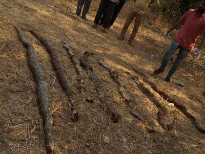 दापोली : खेड तालुक्यातील फुरूस-फळसोंडा येथे जंगलमय भागात ७ अजगरांची हत्या केल्याची घटना उघडकीस आल्यानंतर दापोली वन विभागाने याप्रकरणी गुन्हा दाखल केला आहे. या घटनेनंतर दापोली वन विभागाने चौघांना ताब्यात घेतले असून, अन्य काहींचा यामध्ये समावेश असण्याची शक्यता व्यक्त करण्यात येत आहे.