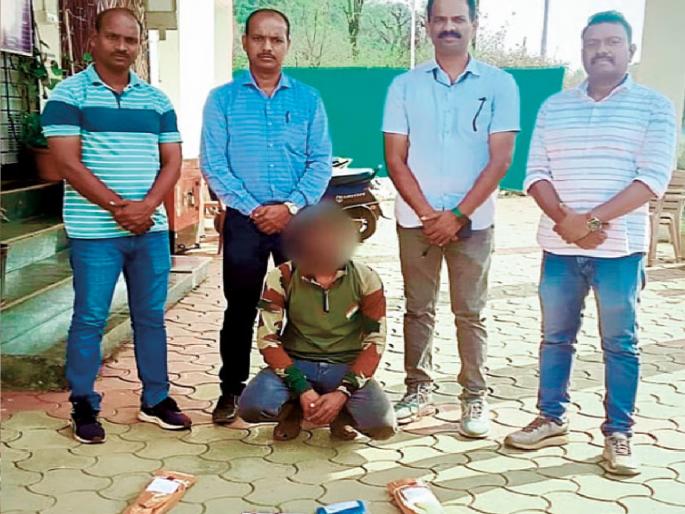 Web Summary : रत्नागिरी पुलिस ने आगवे में अवैध रूप से दो बंदूकें और नौ जिंदा कारतूस रखने के आरोप में 35 वर्षीय व्यक्ति को गिरफ्तार किया। यह कार्रवाई अवैध शराब बिक्री की सूचना मिलने के बाद की गई। कुल ₹70,900 का सामान जब्त किया गया।