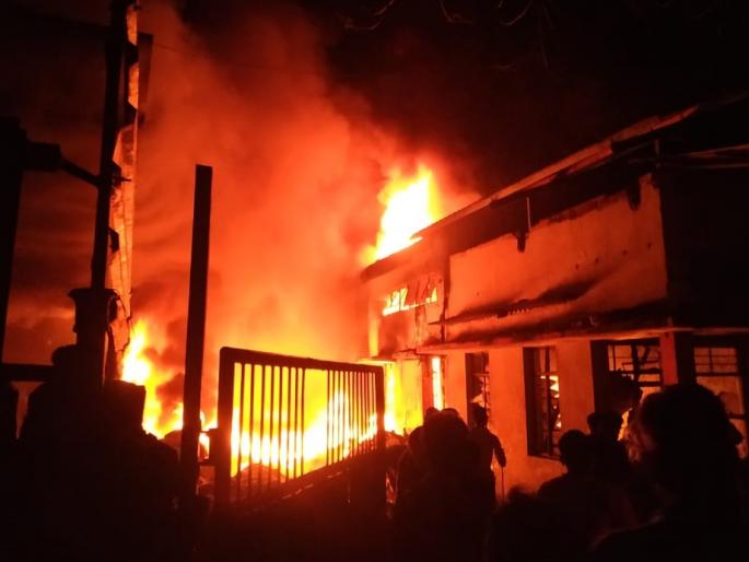 या गोडावूनच्या आतील भागात दोन कामगार राहतात. शुक्रवारी काम आटोपून ते झोपले होते. मात्र त्याचवेळी गोडाऊनच्या मागील बाजूस मोठी आग लागल्याने काही नागरिकांनी मोठी ओरड केली. त्यामुळे जागे झालेल्या दोन्ही कामगार प्रसंगावधान राखत तेथून बाहेर पळाले.