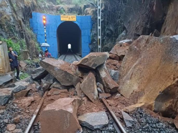 पावसाचा कोकण रेल्वेला फटका; वेरवली विलवडे रेल्वेस्टेशन दरम्यान दरड कोसळली, वाहतूक विस्कळीत