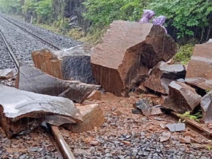 पावसाचा फटका; कोकण रेल्वे मार्गावर कोसळली दरड, वाहतूक विस्कळीत