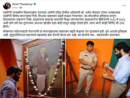 अमित ठाकरे फेसबुकवर पोस्ट करत म्हणाले की, रत्नागिरी शासकीय विश्रामगृहात भेटायला आलेले वरिष्ठ पोलीस अधिकारी श्री. अमेय पोतदार यांच्या आग्रहास्तव रत्नागिरी विशेष कारागृहात गेलो. तिथल्या सावरकर स्मृती कक्षात गेल्यानंतर, त्या कोठडीचा इतिहास जाणून घेतल्यानंतर शहारून गेलो, असं अमित ठाकरे म्हणाले.