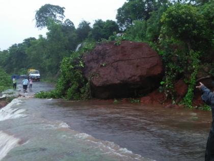 रस्त्यावर मोठे दगड व दरड कोसळल्याने तसेच पाण्यामुळे रस्ता वाहून गेल्याने हा मार्ग पूर्णपणे बंद झाला आहे.
