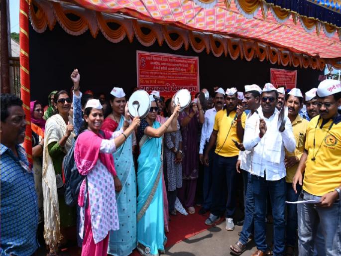 जुनी पेन्शन योजना: रत्नागिरीत संपकऱ्यांनी थाळीनाद करून केला शासनाचा निषेध