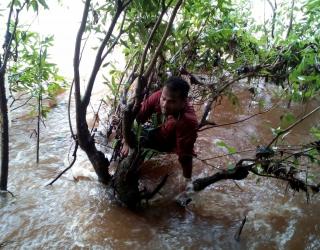 मुंबई-गोवा महामार्गावर टायर फुटून गाडी नदीत, तिघे बेपत्ता