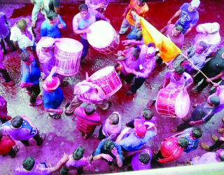 रत्नागिरी : लाल रंगाची उधळण करत संगमेश्वरवासिय रंगात न्हाले!