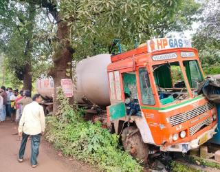हातखंबा येथे पुन्हा अपघात, गॅसवाहू टँकर वडापावच्या टपरीवर आदळला; ग्रामस्थांनी महामार्ग अडवला
