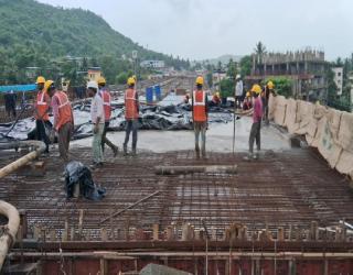 चिपळूणच्या बहुचर्चित उड्डाणपुलावर अखेर पहिला स्लॅब, उड्डाणपुलाचा गर्डर कोसळल्यानंतर पुलाच्या रचनेत बदल