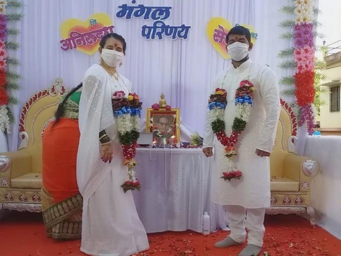 घराच्या गॅलरीतच अडकले विवाहबंधनात-- पाच जणांच्या उपस्थितीत विवाह