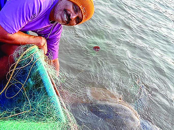 तवसाळ समुद्रकिनारी सात ते आठ ठिकाणी कासवांची अंडी मिळाली असल्याने हेही कासव अंडी घालण्यासाठीच आसरा घेत असल्याची शक्यता असून, आम्ही किमती जाळ्यांची पर्वा न करता त्या कासवाला पाण्यातल्या पाण्यातच जाळ्यातून सोडवून पुन्हा समुद्रात सोडून दिल्याचे पाटील यांनी सांगितले.नुकसान भरपाईचा प्रस्तावदुर्मीळ माशांच्या प्रजातींचे रक्षण करताना नुकसान झाल्यास संबंधितांना त्याची नुकसान भरपाई मिळण्याची महाराष्ट्र शासन मत्स्य विभागाची योजना आहे. त्यानुसार अवधूत पाटील यांनी गुहागरचे सहाय्यक मत्स्य व्यवसाय विकास अधिकारी (परवाना अधिकारी) यांच्याकडे संपर्क साधला. याबाबत सर्व कागदपत्रे व परिस्थितीजन्य पुराव्यांची पडताळणी करुन पाटील यांच्या नुकसान भरपाई संदर्भातील प्रस्ताव वरिष्ठ कार्यालयाकडे पाठविणार असल्याचे सांगण्यात आले आहे.