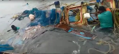 ठळक मुद्देवादळ सदृश्य परिस्थितीमुळे हर्णै बंदरात दोन नौकांना जलसमाधीनौकांवरील खलाशांना वाचवण्यात यश