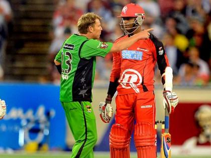 २०१३ मध्ये बिग बॅश टी-२० स्पर्धे दरम्यान वेस्ट इंडिज चा धडाकेबाज अष्टपैलू मर्लोन सॅमुअल्स आणि वॉर्न भर मैदानावर एकमेकांसोबत भिडले होते. सामन्यात वॉर्नने सॅमुअल्सच्या दिशेने चेंडू मारून फेकल्यानंतर हि घटना घडली होती.