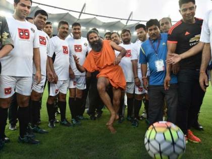 ...जेव्हा रामदेव बाबा फुटबॉल खेळतात !