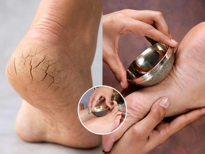 टाचांवरील भेगा कमी करण्यासाठी सर्वातआधी, एका बाऊलमध्ये एरंडेल तेल आणि मोहरीचे तेल समप्रमाणात एकत्र करा. या तेलाच्या मिश्रणात थोडे ग्लिसरीन घाला आणि हे संपूर्ण द्रावण व्यवस्थित एकजीव करून घ्या. तयार झालेले हे मिश्रण भेगाळलेल्या टाचांवर आणि पायांच्या तळव्यांना व्यवस्थित लावा. आता काशाची वाटी (Copper Bowl) म्हणजेच तांब्याची वाटी घ्या आणि त्या वाटीने पायांच्या तळव्यांना हलक्या हाताने मसाज करा. (आयुर्वेदानुसार काशाच्या वाटीने मसाज केल्याने शरीरातील उष्णता कमी होते आणि रक्ताभिसरण सुधारते). मसाज झाल्यानंतर पायात मोजे घालून तसेच झोपा.