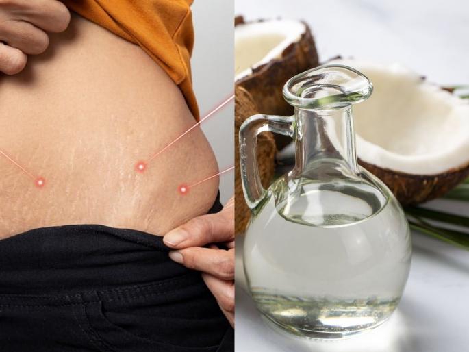महिलांच्या शरीरात वयोमानानुसार अनेक बदल होतात. गर्भधारणा, वजन कमी-जास्त होणं, हार्मोनल बदल किंवा तणाव यामुळे स्ट्रेच मार्क्स येण्याची समस्या मोठ्या प्रमाणात वाढते.(how to use coconut oil for skin care) यामुळे बरेचदा आपण आपला आत्मविश्वास देखील गमावतो.(coconut oil skin benefits) त्वचेवरील पांढऱ्या किंवा गुलाबी रेषा दिसायला जरी छोट्या असल्या तरी मनावर त्यांचा परिणाम मोठा प्रमाणात होतो.(stretch marks home remedies) स्ट्रेच मार्क्स हे सामान्य जरी असले तरी त्वचा अचानक ताणली जाते किंवा आकुंचन पावते.(coconut oil for glowing skin) गर्भधारणेदरम्यान, वजन वाढल्यानंतर या समस्या साधारणपणे उद्भवतात.(natural remedy for stretch marks) त्वचेच्या आतील थरांमध्ये किरकोळ भेगा पडतात, ज्यानंतर स्ट्रेच मार्क्स म्हणून दिसतात. अनेकांना यामुळे लाज देखील वाटते.(how to use coconut oil for skin care) स्ट्रेच मार्क्स घालवण्यासाठी अनेकजण नारळाच्या तेलाचा वापर करतात. असं म्हटलं जातं की नियमितपणे नारळाच्या तेलाचा वापर केल्यास स्ट्रेच मार्क्स कमी करण्यास मदत होते. पण हे खरं आहे का? जाणून घेऊया तज्ज्ञांकडून.