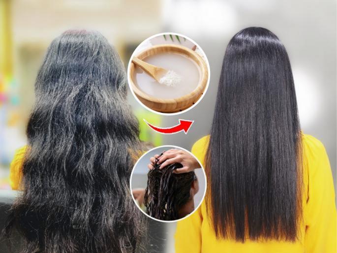 १. तांदळाचे पाणी :- तांदळाचे पाणी केसांच्या आरोग्यासाठी अत्यंत फायदेशीर आहे. राईस वॉटर स्कॅल्पची pH लेव्हल संतुलित ठेवते, ज्यामुळे केस मऊ आणि स्मूद होण्यास मदत होते. हे पाणी गोड आणि पौष्टिक असते, तसेच यात थंडावा देणारे गुणधर्म असतात. एक कप तांदूळ आणि ६ कप पाणी घ्या. तांदूळ पाण्यात टाकून दोन तास तसेच ठेवा. त्यानंतर तांदूळ नीट चोळून पाणी गाळून घ्या. अधिक चांगल्या रिझल्टसाठी (जास्त सिल्की केसांसाठी) हे पाणी रात्रभर फरमेंट व्हायला ठेवा. शॅम्पू केल्यानंतर हे पाणी केसांवर ओतून त्या पाण्याने केस धुवून घ्यावेत.