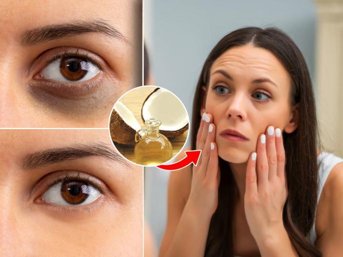 सध्याच्या डिजिटल युगात आपला अर्ध्याहून वेळ लॅपटॉप, मोबाईलच्या स्क्रीनसमोर जातो. कामाचा ताण, अपुरी झोप आणि वाढते प्रदूषण यामुळे आपल्या डोळ्यांखाली काळी वर्तुळे म्हणजे डार्क सर्कल्स येणं ही सध्या सामान्य समस्या बनली आहे.(Coconut oil for dark circles) या काळ्या वर्तुळांमुळे चेहरा थकलेला आणि निस्तेज दिसू लागतो. ही वर्तुळे लपवण्यासाठी आपण महागडे कन्सिलर किंवा केमिकल असलेल्या आय-क्रीम्सचा आधार घेतो. पण याचा फारसा काही फरक दिसत नाही.(Natural remedy for dark circles) चेहरा कितीही सुंदर असला तरी डोळ्यांखाली असणारी काळी वर्तुळे आपलं संपूर्ण सौंदर्य खराब करतात. पण आपल्या स्वयंपाकघरात असणाऱ्या अशा अनेक गोष्टी आहेत.(Eye care home remedies ) ज्या डार्क सर्कल्सवर अत्यंत प्रभावी ठरतात. चला तर जाणून घेऊया, डोळ्यांखाली खोबऱ्याचे तेल लावल्याने खरंच फरक दिसतो का, याविषयी.
