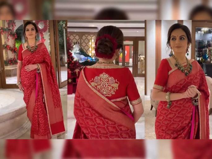 नीता अंबानी यांच्या लाल रंगाच्या बनारसी साडीचे वैशिष्ट्य..