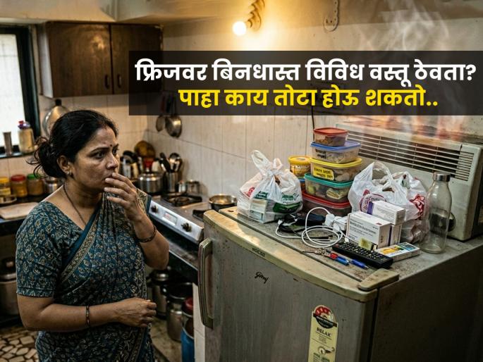 अनेक जण फ्रिजच्या वरचा भाग एक्स्ट्रॉची जागा म्हणून वापरतात आणि तिथे काहीही ठेवतात. पण फ्रिजच्या वर काही वस्तू ठेवणं धोकादायक किंवा नुकसानकारक ठरू शकतं. कारण फ्रिज चालू असताना वरचा भाग गरम होतो, तसेच कंपन (vibration) ही निर्माण होते. त्यामुळे काही वस्तू तिथे ठेवणं टाळायला हवं.