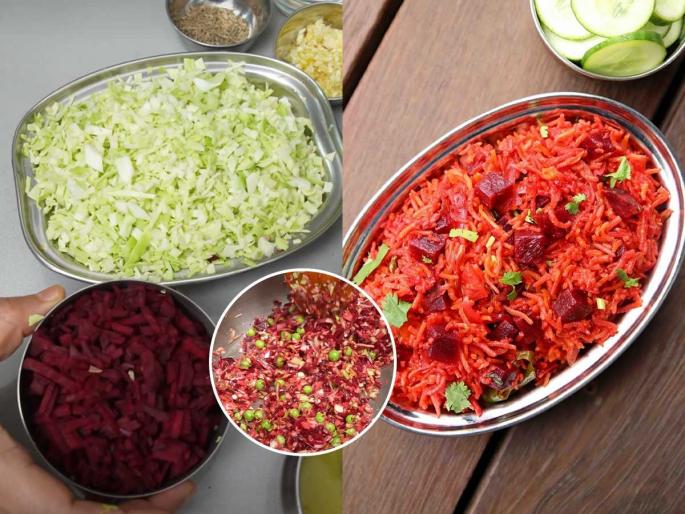 मुले भाज्या खाण्यास कंटाळा करतात तेव्हा काय बनवावं असा प्रश्न रोज आईला पडतो. मुलांचे पोषणमूल्ये आणि आपली चव यांचा मेळ घालणं कठीण होतं. पुलाव हा आपल्या सर्वांचा आवडीचा पदार्थ पण तोच तोच मटार किंवा बटाटा पुलाव खाऊन अनेकदा कंटाळा येतो.(Jhatpat vegetable pulao recipe) अशा वेळी काहीतरी नवीन, रंगीत आणि पौष्टिक करून पाहायचे असेल, तर बीटरूट-कोबी पुलाव हा एक उत्तम पर्याय आहे.(15 minutat pulao recipe)