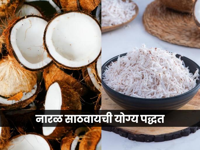 नारळ ताजा ठेवण्यासाठी सर्वात आधी त्याची साठवण योग्य पद्धतीने करणं महत्त्वाचं आहे. फोडलेला नारळ हवाबंद डब्यात (airtight container) ठेवून फ्रिजमध्ये ठेवावा. त्यामुळे त्यातील ओलावा टिकून राहतो आणि तो लवकर सुकत नाही. तसेच नारळाचे तुकडे करून त्यावर थोडंसं पाणी शिंपडून ठेवले, तर त्याचा ताजेपणा जास्त काळ टिकतो. काहीजण किसलेला नारळ हलक्या हाताने भाजून (dry roast) ठेवतात, त्यामुळे तो पटकन खराब होत नाही.