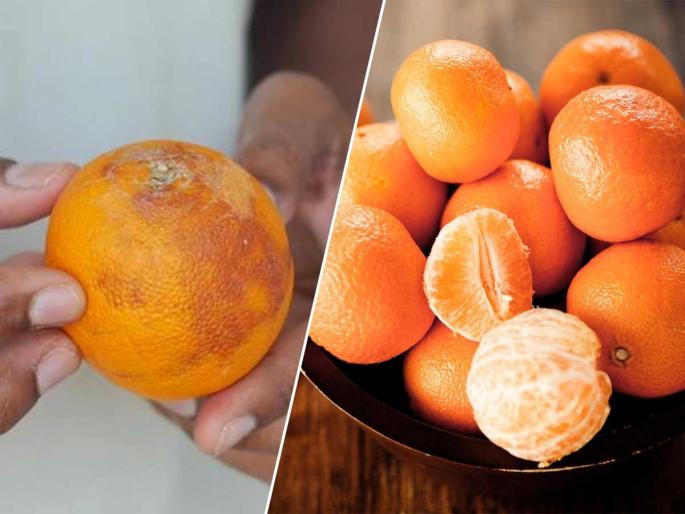 ३. डागविरहित संत्री निवडा :- संत्री खरेदी करताना त्याच्या वरच्या भागाचे नीट निरीक्षण करणे अत्यंत गरजेचे आहे. संत्र्यावर कोणत्याही प्रकारचे डाग नसावेत. जर संत्र्यावर काळ्या किंवा तपकिरी रंगाचे डाग असतील, तर याचा अर्थ असा होतो की ते संत्रं आतून सडायला सुरुवात झाली आहे किंवा ते खूप जुने झाले आहे. अनेकदा फळांवर पांढऱ्या पावडरसारखा थर दिसतो, जो बुरशी किंवा कीटकनाशकांचा अंश असू शकतो. त्यामुळे नेहमी स्वच्छ, चमकदार आणि एकसारखा केशरी रंग असलेले संत्रंच विकत घ्यावे अशी संत्री ताजी आणि खाण्यासाठी सुरक्षित असतात.