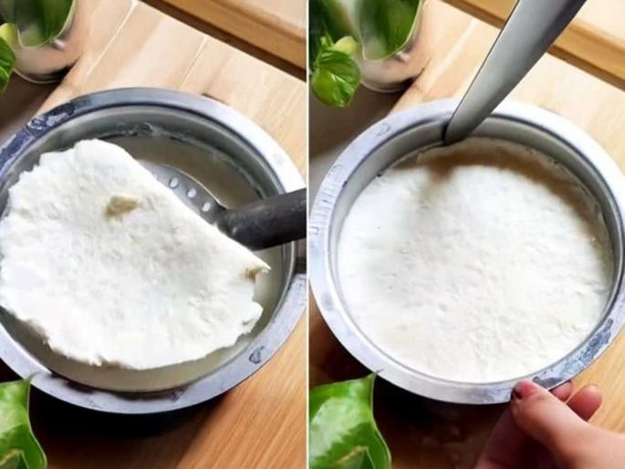 ५. फ्रिजमध्ये ठेवून साय काढा :- दूध पूर्णपणे थंड झाल्यावर ते कमीत कमी ३ ते ४ तास फ्रिजमध्ये सेट व्हायला ठेवा. त्यानंतर चाकू किंवा चमच्याच्या मदतीने कडा सोडून तुम्ही जाड साय बाहेर काढू शकता.