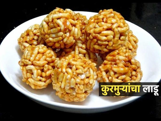 हे लाडू करण्याासठी सर्वात आधी ३ वाटी कुरमुरे लाडू मंद आचेवर कढईत थोडे भाजून घ्या. ज्यामुळे ते अधिक कुरकुरीत होतील. त्यानंतर एका कढईत १ चमचा तूप आणि १ वाटी चिरलेला गूळ घेऊन त्यात थोडं पाणी घालून पाक तयार करा. गूळ पूर्णपणे विरघळल्यावर त्याला फेस येऊ लागतो. अशावेळी पाकाचा थेंब पाण्यात टाकून पाहा. जर त्याची कडक गोळी झाली तर पाक तयार झाला असं समजावे.