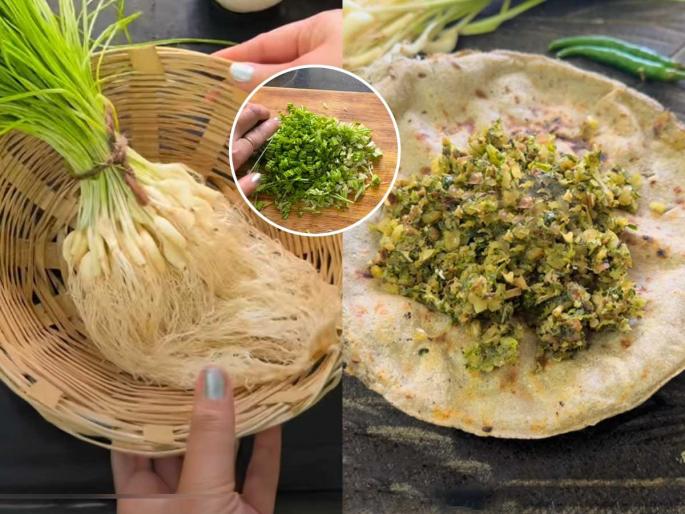 थंडीचा तडाखा वाढला की बाजारात ठिकठिकाणी ताज्या, टवटवीत, हिरव्यागार भाज्यां फार मोठ्या प्रमाणांत विकायला ठेवलेल्या दिसतात. थंडीच्या दिवसांत शरीराला उष्णता देणारे, चवीलाच नाही तर आरोग्यालाही पोषक असे पदार्थ खाण्याची खास गरज असते. अशाच पारंपरिक आणि चविष्ट पदार्थांपैकी एक म्हणजे हिरव्यागार लसणाच्या पातीचा ठेचा.... थंडीच्या दिवसांत मिळणारी 'ओल्या लसणाची पात' म्हणजे खवय्यांसाठी एक पर्वणीच असते. बाजरीची गरमागरम भाकरी आणि सोबतीला झणझणीत, जिभेला तिखट चवीचा अस्सल अनुभव देणारा हिरव्या पातीचा ठेचा असेल, तर जेवणाची रंगत काही वेगळीच असते. हा ठेचा केवळ चवीलाच नाही, तर आरोग्यासाठीही अत्यंत गुणकारी मानला जातो(How To Make Olya Lasnachya Paticha Thecha Recipe At Home).