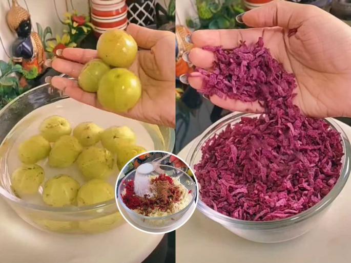 आवळ्याचा मुखवास हा केवळ तोंडाची दुर्गंधी दूर करणारा नसून आरोग्याच्या दृष्टीनेही अत्यंत गुणकारी आहे. जेवणानंतर थोडासा आवळ्याचा मुखवास खाल्ल्याने पचनसंस्था, तोंडाचे आरोग्य आणि एकंदर शरीरावर चांगला परिणाम होतो. पारंपरिक पद्धतीने तयार केलेला आवळ्याचा मुखवास औषधी गुणांनी भरलेला असतो.(Make a great mukhwas at home - it not only removes bad breath but also provides many health benefits) आवळ्यामध्ये जीवनसत्त्व सी भरपूर प्रमाणात असते, जे शरीराची प्रतिकारशक्ती वाढवण्यास मदत करते. मुखवासाच्या स्वरुपात आवळा घेतल्याने हे पोषण सहजपणे शरीराला मिळते. जेवणानंतर पचनक्रिया मंदावते, अशावेळी आवळ्याचा मुखवास पचन रसांची निर्मिती वाढवतो आणि अन्न नीट पचण्यास मदत करतो. त्यामुळे जडपणा, पोटफुगी आणि अपचनाचा त्रास कमी होतो. तसेच त्यात बीट असेल तर त्याचा फायदा जास्त होतो. पाहा हा गुलाबीसर मुखवास करण्याची रेसिपी.