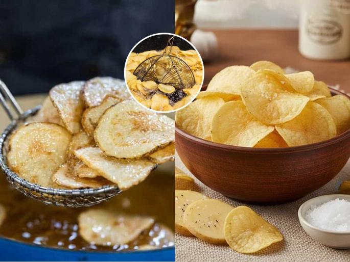 चिप्स तळताना तेलाचे तापमान योग्य असणे खूप महत्त्वाचे आहे. खूप गरम तेलात टाकले तर चिप्स लगेच तपकिरी होतात पण आतून कच्चे राहू शकतात, तर थंड तेलात टाकले तर ते जास्त तेल शोषून घेतात. त्यामुळे मध्यम तापमानावर थोडे थोडे काप टाकून तळणे योग्य ठरते. चिप्स हलक्या हाताने ढवळत राहिल्यास ते एकमेकांना चिकटत नाहीत आणि समान तळले जातात. सोनेरी आणि कुरकुरीत झाल्यावर ते बाहेर काढून टिश्यू पेपरवर ठेवावेत, जेणेकरुन अतिरिक्त तेल निघून जाईल. चव वाढवण्यासाठी गरम चिप्सवर लगेच मीठ, तिखट किंवा चाट मसाला घातला तर मसाला व्यवस्थित लागतो. तुम्ही आपल्या आवडीनुसार पेरी-पेरी, काळं मीठ किंवा हर्ब्सही वापरु शकता. एक महत्त्वाची गोष्ट म्हणजे चिप्स पूर्ण थंड झाल्यावरच हवाबंद डब्यात साठवावेत, नाहीतर ते मऊ पडू शकतात.