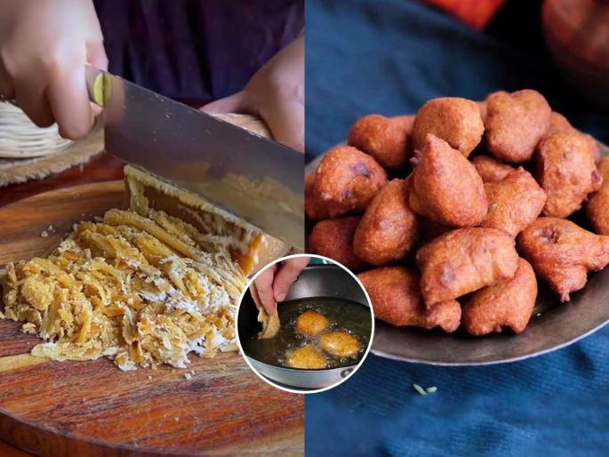 २. गव्हाच्या पीठात गुळाचे पाणी गाळून ओतायचे. पीठ मस्त मिक्स करायचे. एक वाटी पिठासाठी दोन वाटी गूळ पाणी लागते. पीठ घट्ट नाही तर मऊ करायचे. जसे भजीसाठी करता अगदी तसंच. तेल गरम करायचे. आणि त्यात हाताने तयार मिश्रणाचे लहान गोळे सोडायचे. खमंग कुरकुरीत होईपर्यंत तळायचे. रंग गडद झाला की काढून घ्यायचे. गार करायचे. आत मऊ आणि बाहेरुन मस्त कुरकुरीत असतात.