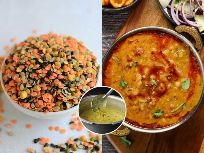 यामध्ये मूग डाळ, मसूर डाळ, तूर डाळ, चणा डाळ आणि उडीद डाळ या पाचही डाळी एकत्र शिजवल्या जातात.(Rajasthani dal with rice) प्रत्येक डाळीची चव आणि गुणधर्म वेगळा असतो, पण एकत्र आल्यावर त्या डाळींचं रूपांतर एका समृद्ध आणि भरगच्च पदार्थात होतं. ही डाळ कशी करायची पाहूया.