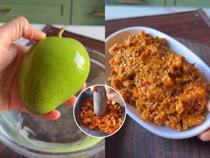 चिरलेली कैरी खलबत्त्यामध्ये घाला. तिच्यामध्ये तिखट, मीठ आणि हळद घालून ती बारीक कुटून घ्या. यानंतर तिच्यामध्ये बारीक चिरलेला कांदा, कोथिंबीर, हिरव्या मिरच्या घाला आणि सगळं एकत्रितपणे एकजीव होईपर्यंत बारीक कुटून घ्या.